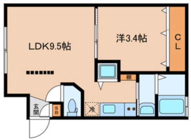 | 間取り詳細 | 洋室 3.4畳 、 LDK 9.5畳 |