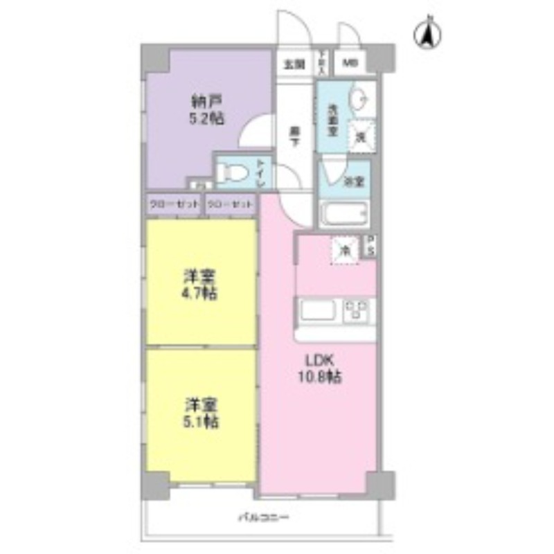| 間取り詳細 | 洋室 5.1畳 、 洋室 4.7畳 、 LDK 10.8畳 、 S 5.2畳 |