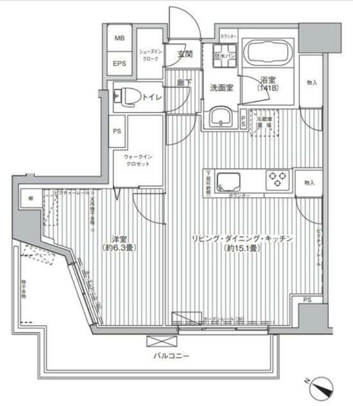 | 間取り詳細 | 洋室 6.3畳 、 LDK 15.1畳 |