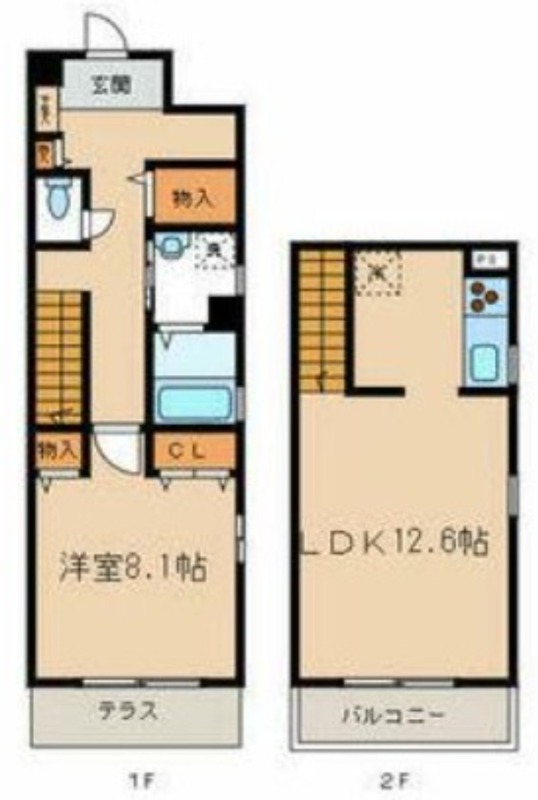 洋室 8.1畳 、 LDK 12.6畳