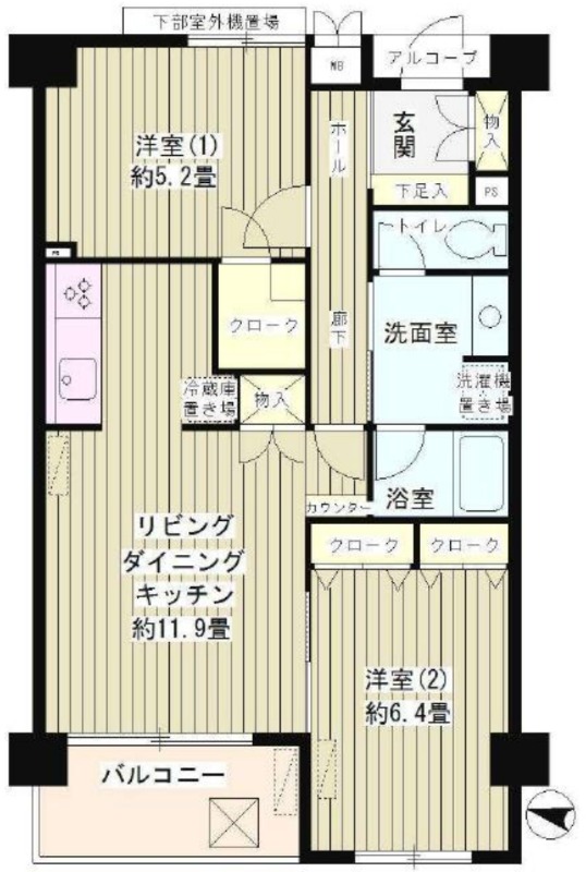 洋室 5.2畳 LDK 11.9畳 |