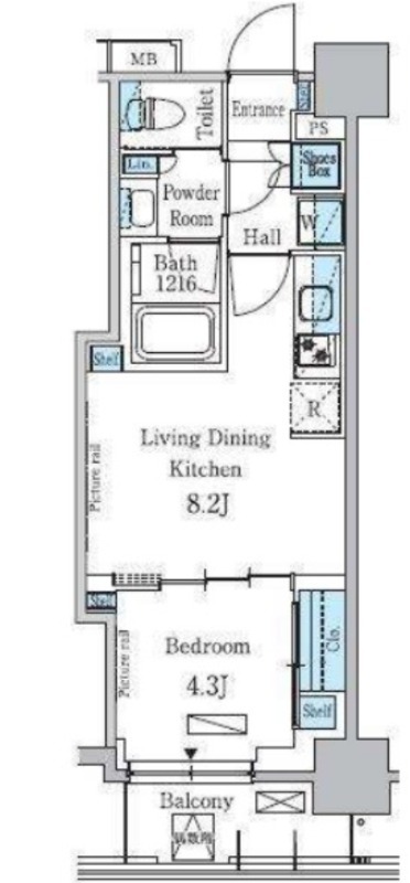 | 間取り詳細 | 洋室 4.3畳 、 LDK 8.2畳 |