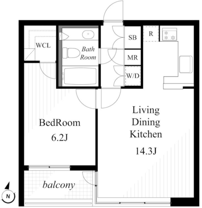 洋室 6.2畳 、 LDK 14.3畳