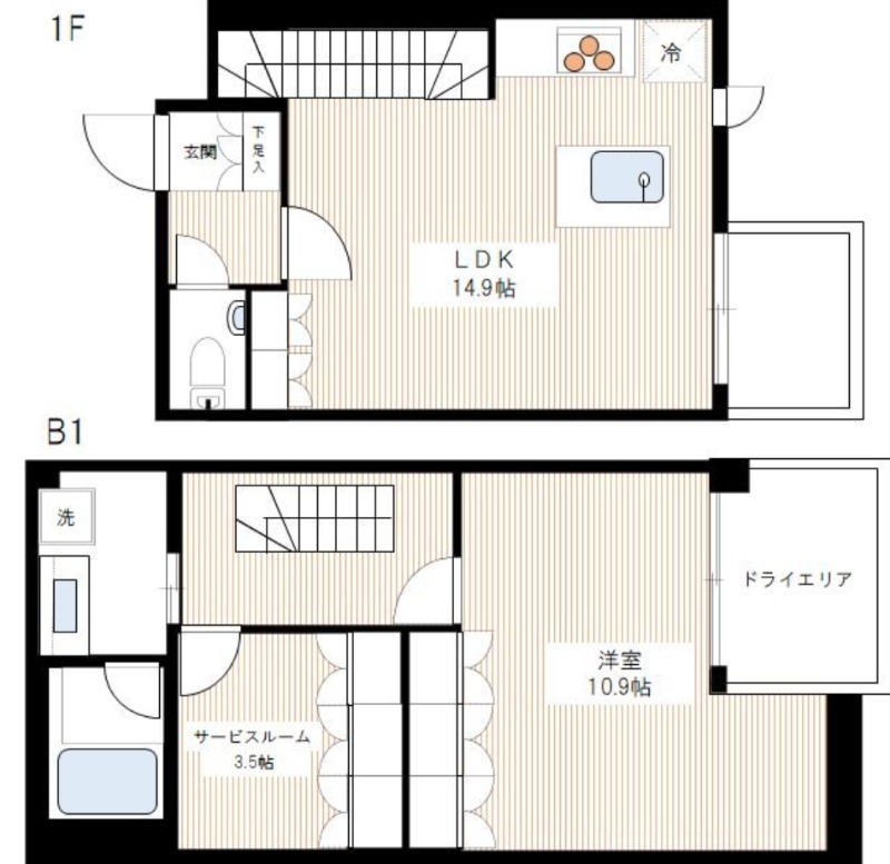 | 間取り詳細 | 洋室 10.9畳 、 LDK 14.9畳 、 S 3.5畳 |