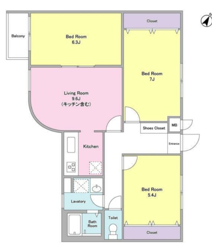 | 間取り詳細 | 洋室 7畳 、 洋室 6.3畳 、 洋室 5.4畳 、 DK 9.6畳 |