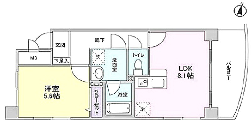 洋室 5.6畳 、 LDK 8.1畳