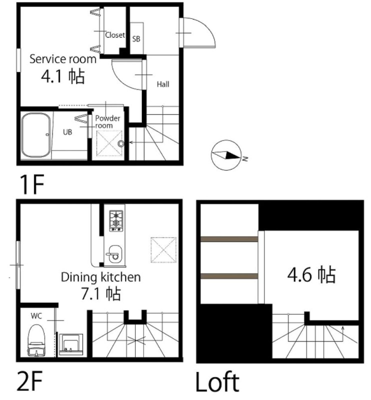 ガス(都市ガス)、24時間緊急対応、インターホン(TVモニター付き)、宅配ボックス、駐輪場、日当り良好、デザイナーズ、通風良好、フローリング、全居室フローリング、メゾネット、ロフト、玄関ホール、クローゼット、クローゼット数(1)、全居室収納、下駄箱、バス・トイレ別(別室)、シャワー、追い焚き、浴室乾燥機、オートバス、脱衣所、温水洗浄便座、洗面所独立、洗面所にドア、洗濯機置き場(室内)、コンロ口数(2)、コンロ種類(都市ガス)、システムキッチン、カウンターキッチン、エアコン、エアコン台数(全室)、24H換気システム、CATV、光ファイバー |