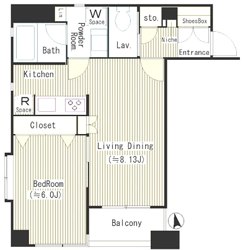 | 間取り詳細 | 洋室 6畳 、 LD 8.1畳 、 K 畳 |