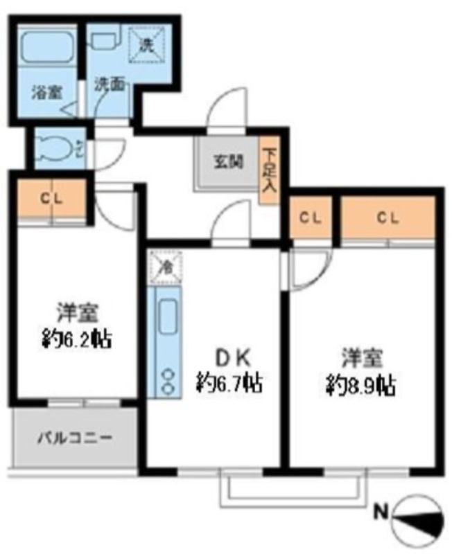 | 間取り詳細 | 洋室 8.9畳 、 洋室 6.2畳 、 DK 6.7畳 |
