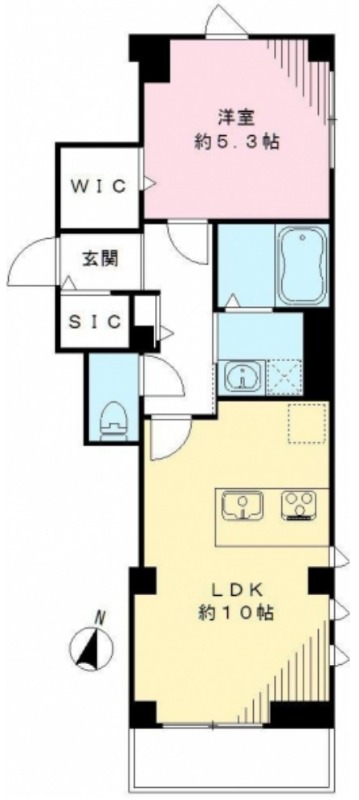 洋室 5.3畳 、 LDK 10畳