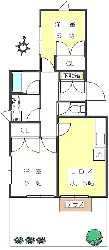 | 間取り詳細 | 洋室 6畳 、 洋室 5畳 、 LDK 8.5畳 |