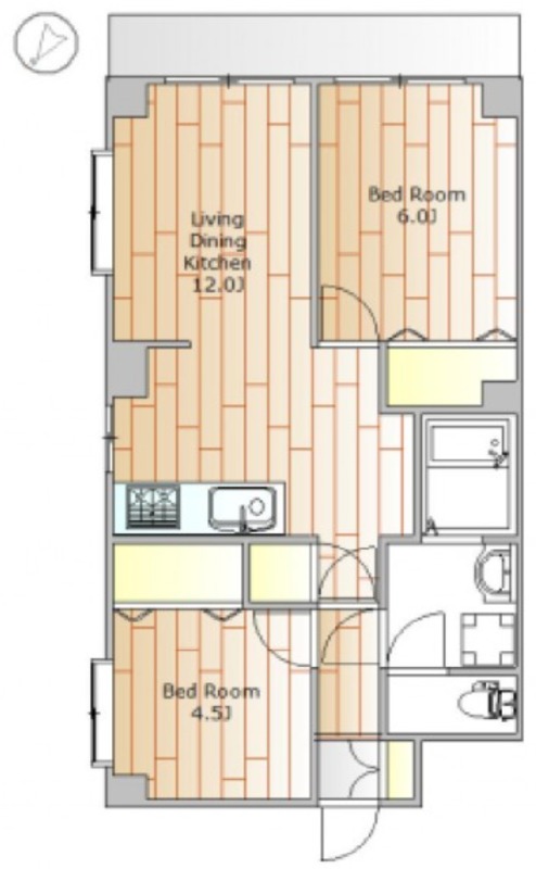 | 間取り詳細 | 洋室 6畳 、 洋室 4.5畳 、 LDK 12畳 |
