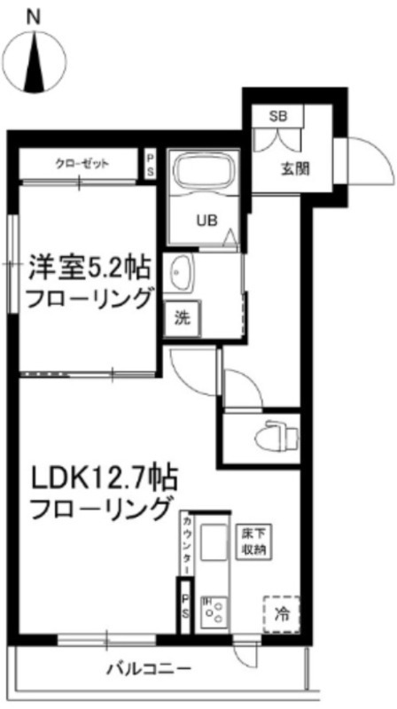 洋室 5.2畳 、 LDK 12.7畳