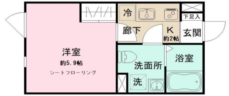 洋室 5.9畳 、 K 畳