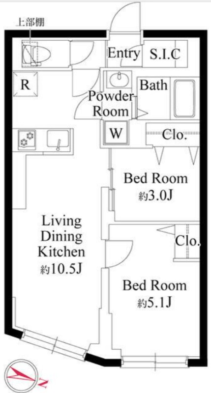 | 間取り詳細 | 洋室 5.1畳 、 洋室 3畳 、 LDK 10.5畳 |
