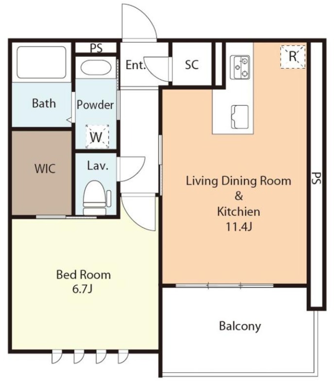| 間取り詳細 | 洋室 6.7畳 、 LDK 11.4畳 |