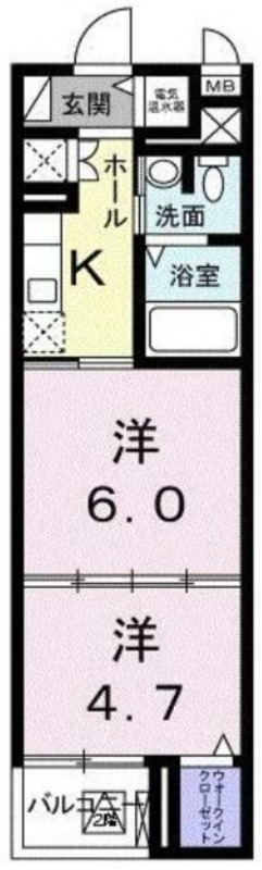 | 間取り詳細 | 洋室 6畳 、 洋室 4.7畳 、 K 畳 |