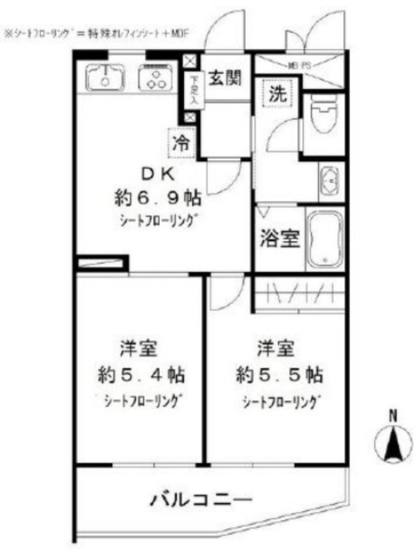 | 間取り詳細 | 洋室 5.5畳 、 洋室 5.4畳 、 DK 6.9畳 |