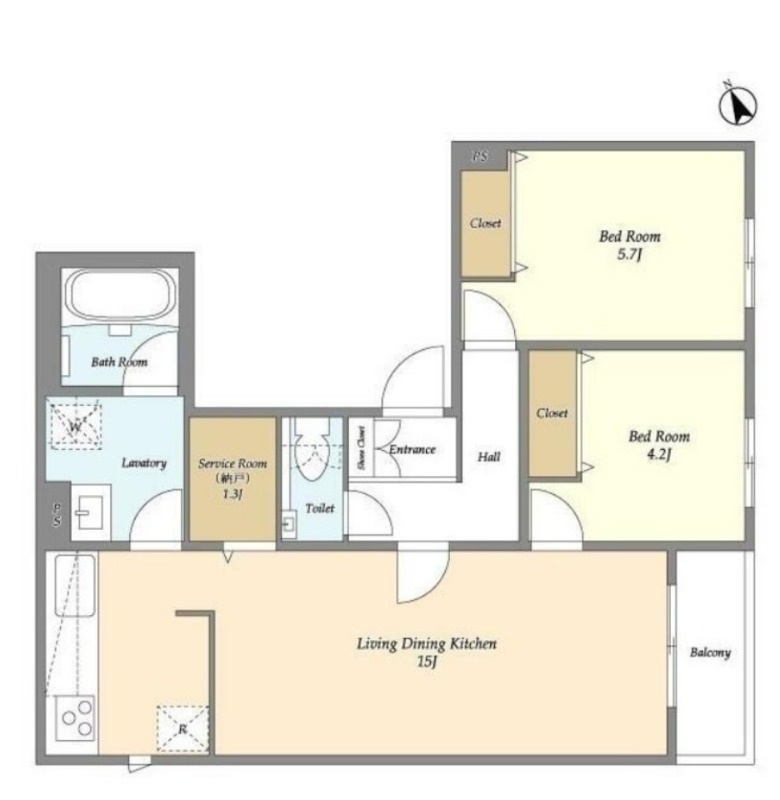 | 間取り詳細 | 洋室 5.7畳 、 洋室 4.2畳 、 LDK 15畳 |
