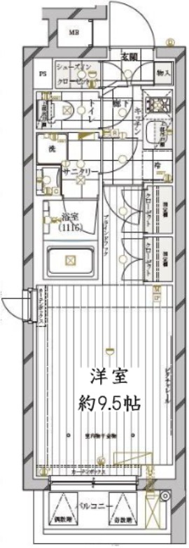 | 間取り詳細 | 洋室 9.5畳 、 K 畳 |