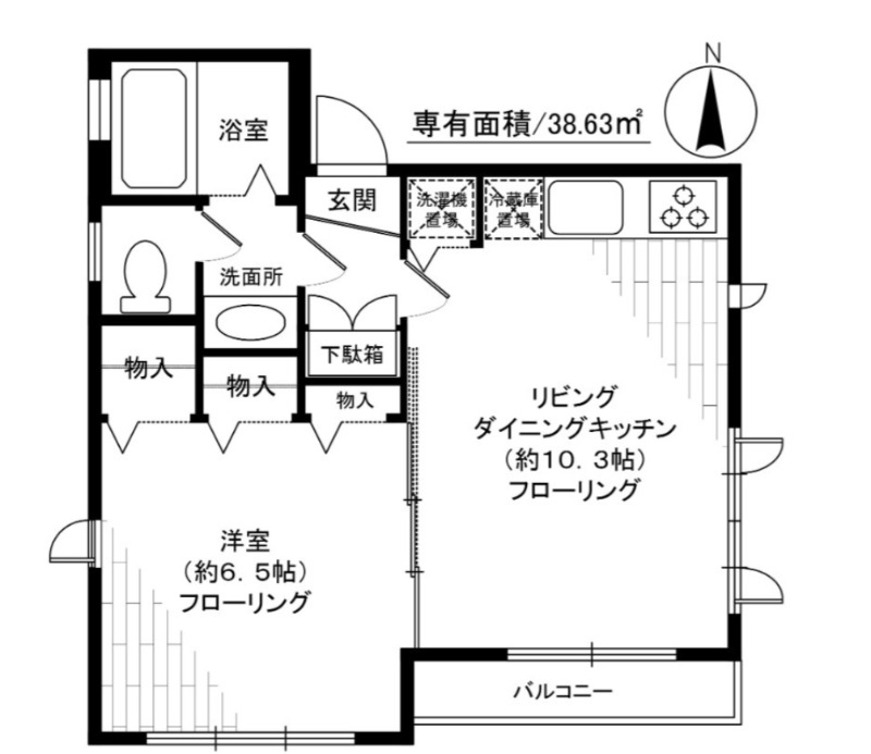 | 間取り | 1LDK | 面積 | 38.63㎡ |