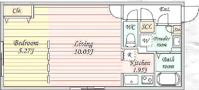 洋室 5.27畳 、 LDK 10.05畳