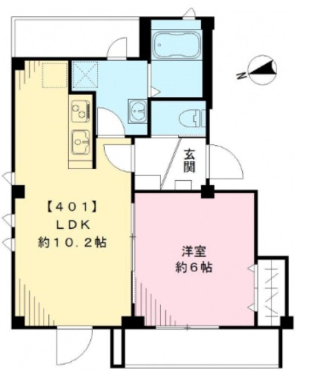 洋室 6畳 、 LDK 10.2畳