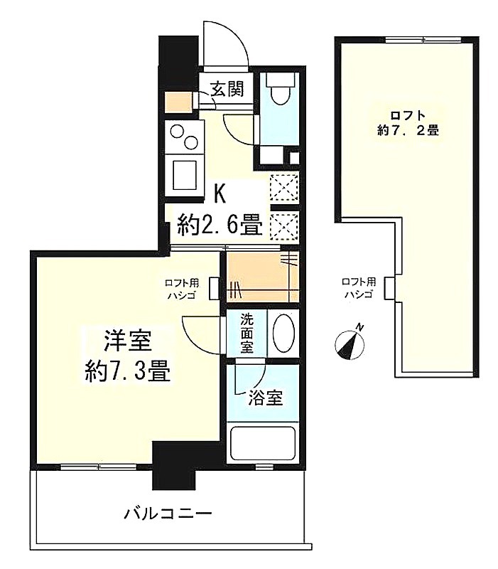 洋室 7.3畳 、 K 畳