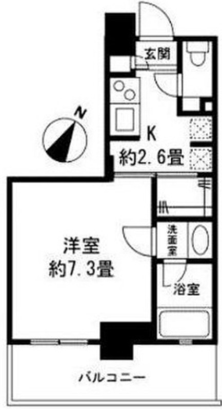洋室 7.3畳 、 K 畳