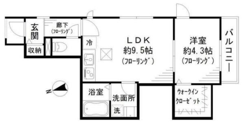 洋室 4.3畳 、 LDK 9.5畳