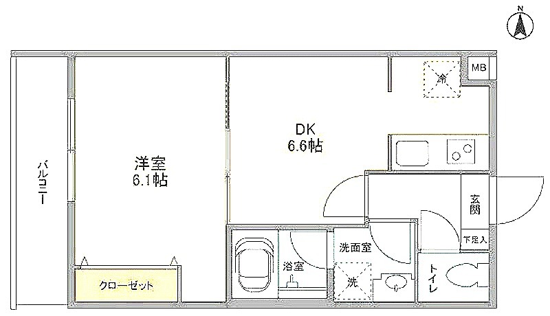 洋室 6.1畳 、 DK 6.6畳