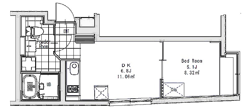 洋室 5.1畳 、 LDK 6.8畳
