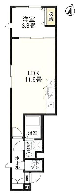 洋室 3.8畳 、 LDK 11.6畳