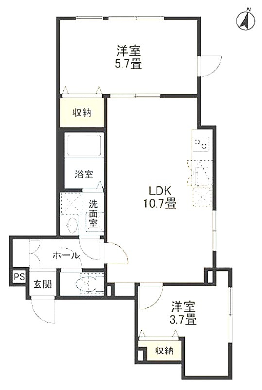| 間取り詳細 | 洋室 5.7畳 、 洋室 3.7畳 、 LDK 10.7畳 |