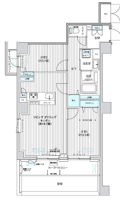 | 間取り | 2LDK | 面積 | 58.1㎡ |