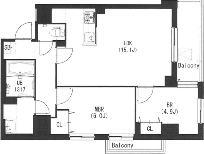 洋室 4.9畳 LDK 15.1畳 |