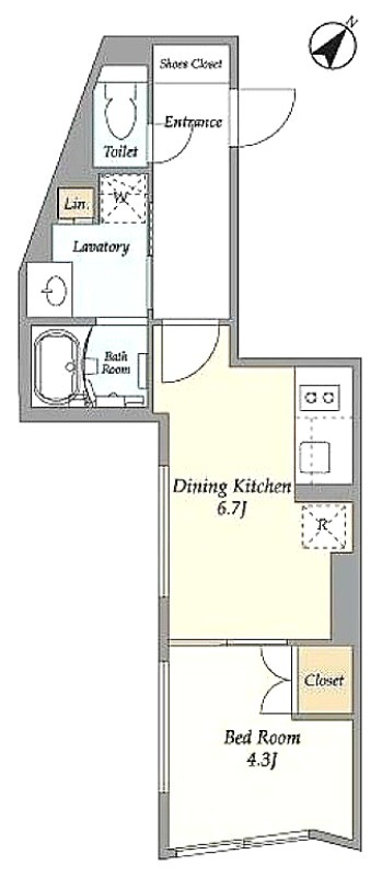 洋室 4.3畳 、 DK 6.7畳
