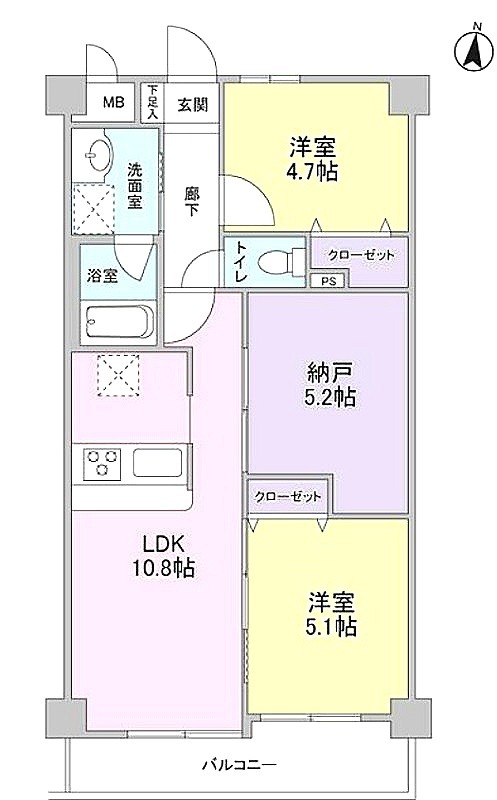 洋室 4.7畳 LDK 10.8畳 S 5.2畳 |