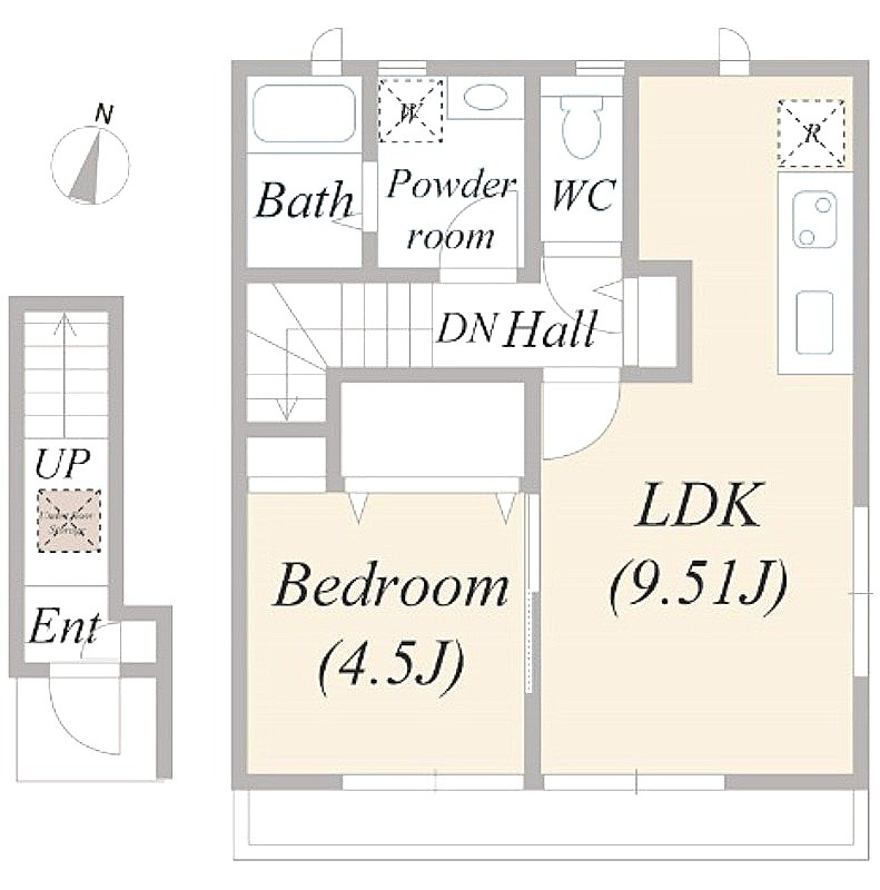 洋室 4.5畳 、 LDK 9.51畳