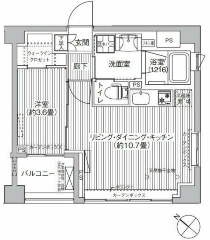 洋室 3.6畳 、 LDK 10.7畳