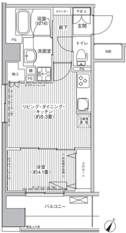 洋室 4.1畳 、 LDK 8.3畳