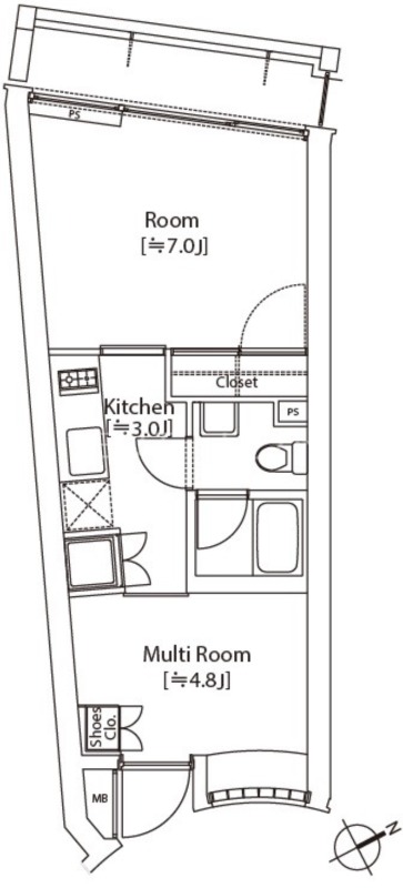 | 間取り詳細 | 洋室 7畳 、 K 畳 、 S 4.8畳 |