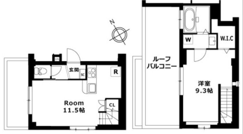 洋室 9.3畳 、 LDK 11.5畳