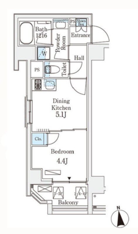 洋室 4.4畳 、 DK 5.1畳