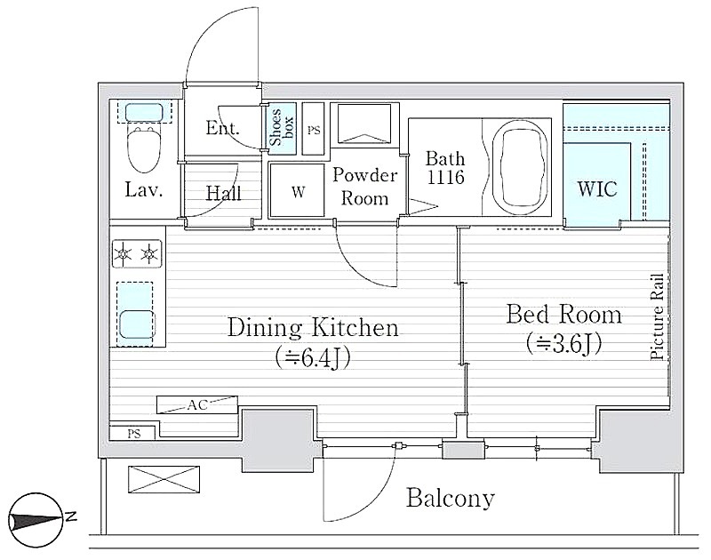 洋室 3.6畳 、 DK 6.4畳