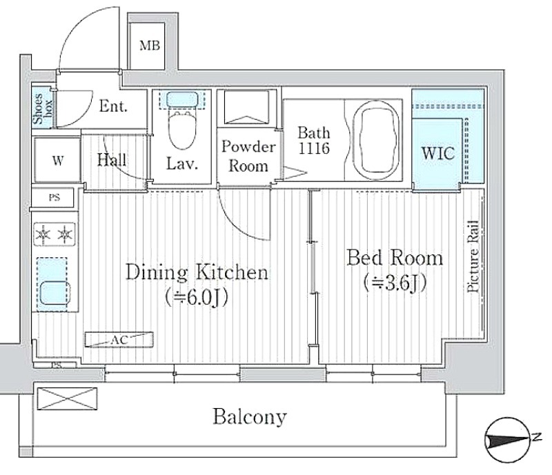 洋室 3.6畳 、 DK 6畳
