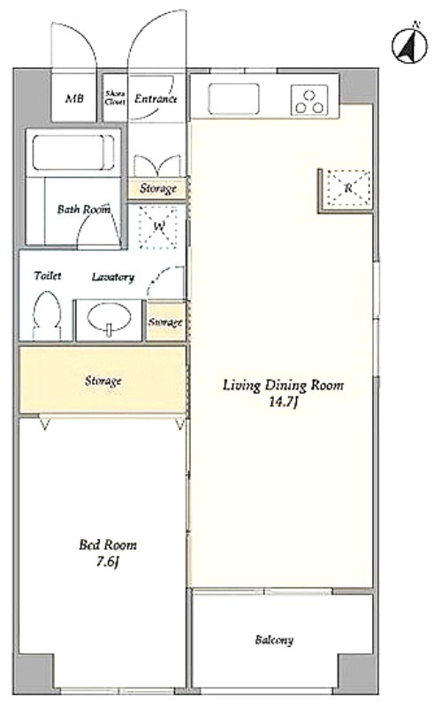洋室 7.6畳 、 LDK 14.7畳