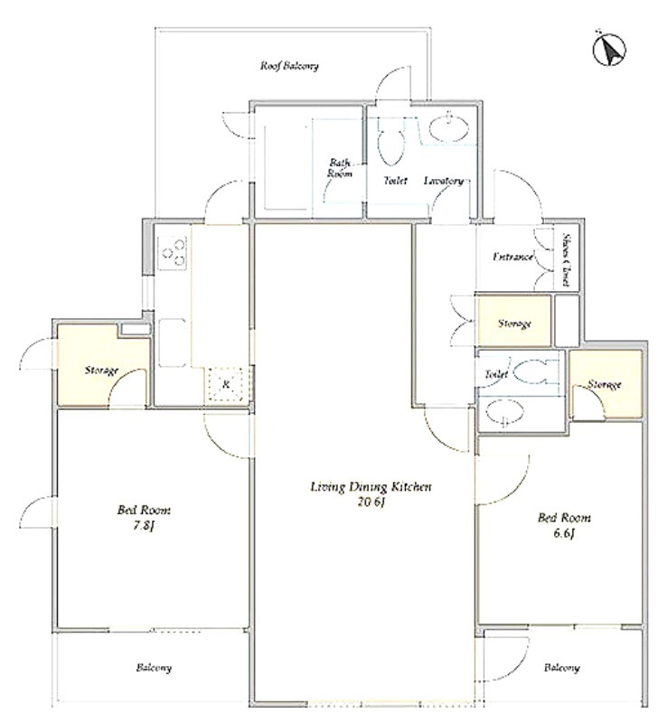 | 間取り詳細 | 洋室 7.8畳 、 洋室 6.6畳 、 LDK 20.6畳 |