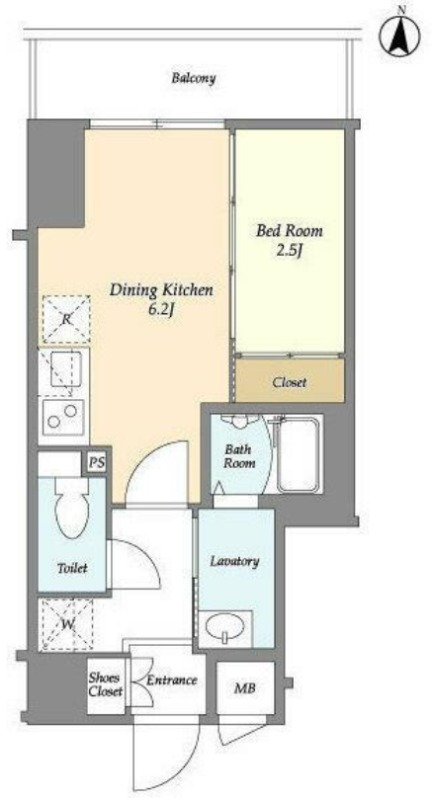 洋室 2.5畳 、 DK 6.2畳