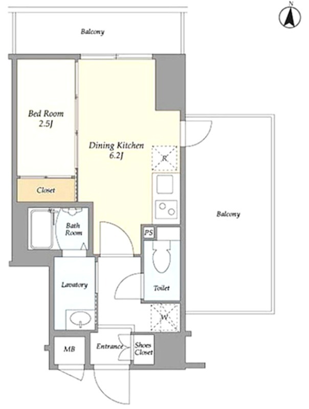 | 間取り詳細 | 洋室 2.5畳 、 DK 6.2畳 |